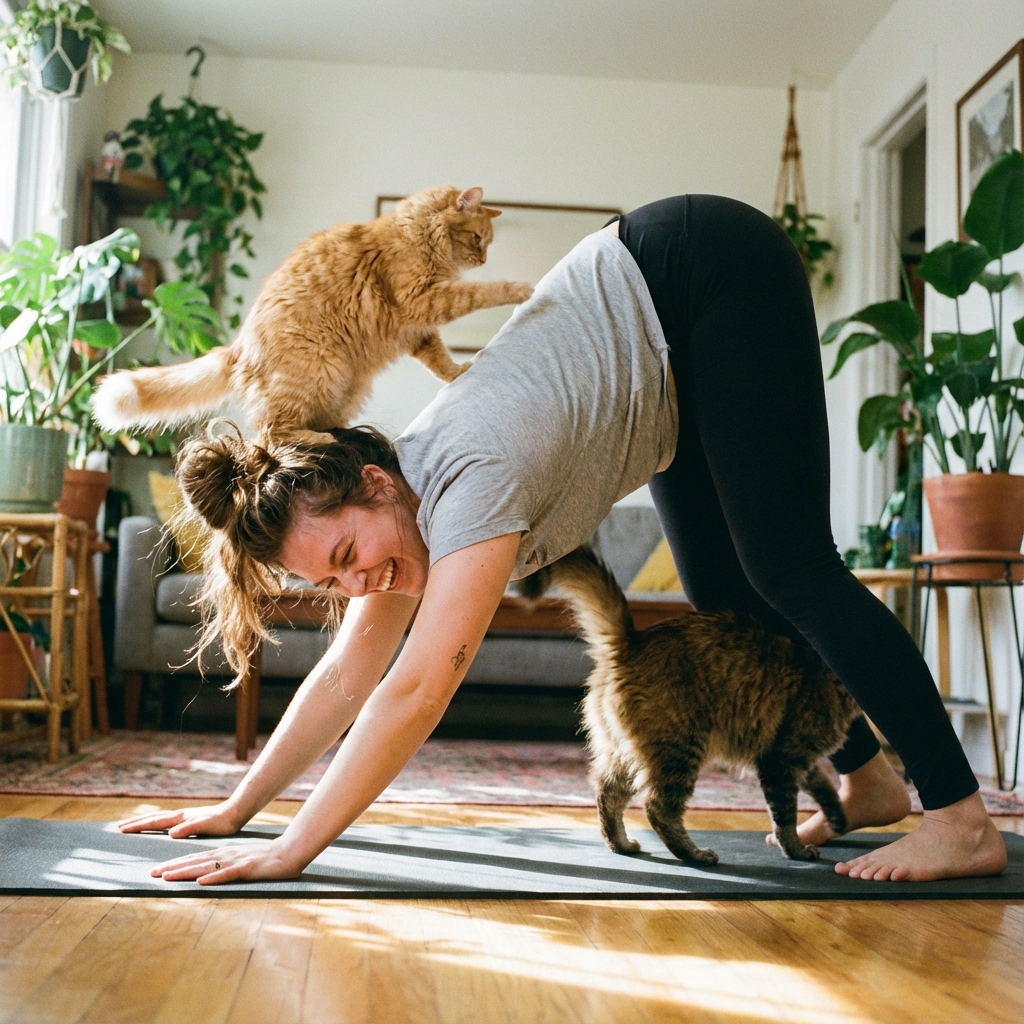 Le yoga, c'est l'union du corps et de l'esprit. C'est la recherche de la paix intérieure, du silence, de l'harmonie... Jusqu'à ce que Simba, 5 kilos, décide que votre tapis de yoga est en réalité le plus grand griffoir horizontal du monde, ou que votre posture du "Chien tête en bas" est une invitation personnelle à vous mordre les cheveux.